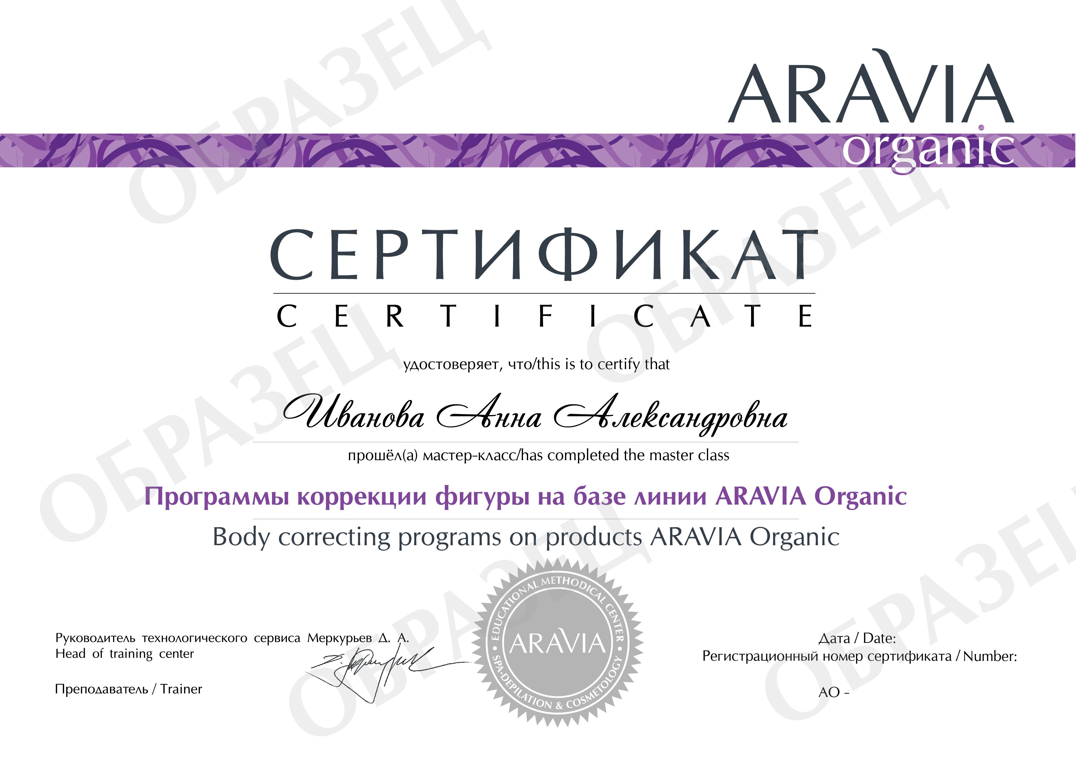 После прохождения мастер-класса участники получат прайс-листы, методические пособия, каталоги продукции и именной сертификат о прохождении мастер-класса по теме «Программы коррекции фигуры на базе линии ARAVIA Organic». Также мастера получают специальную скидку косметолога на весь ассортимент ARAVIA.